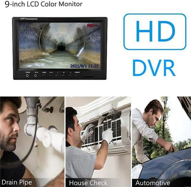 Professional Drain Pipe/Sewer Pipeline Inspection Camera is designed with a 9 inch color TFT LCD monitor with a sun-visor for outdoor inspections. The material of wire is fiberglass rod(diameter: 4.9MM ), anti-corrosion/cold/tensile.