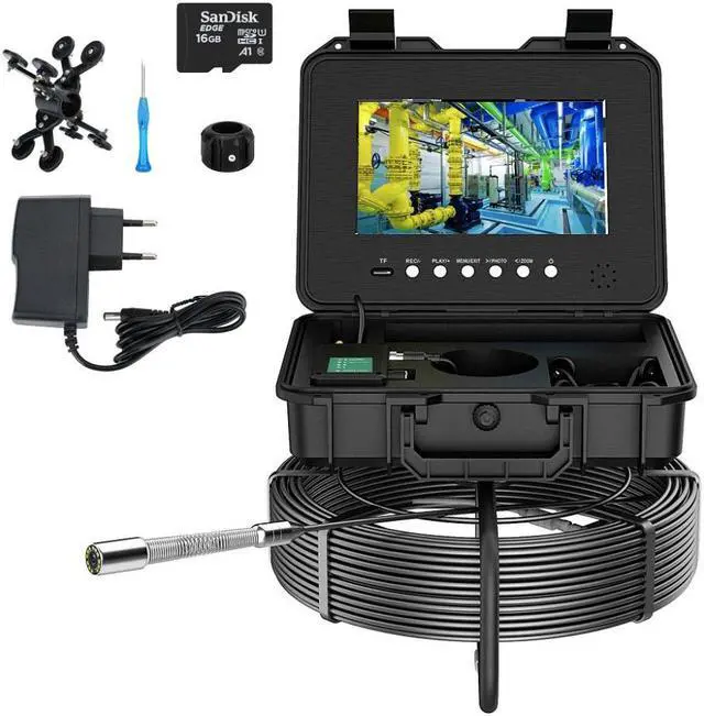 Pipeline Wall Sewer Inspection Snake Camera built-in TF Card slot, 16GB TF card included, it is avialiable to view live video and save video recording and photos and audio record. You can record the inspections and playback via the pipe system. (DVR