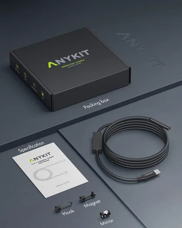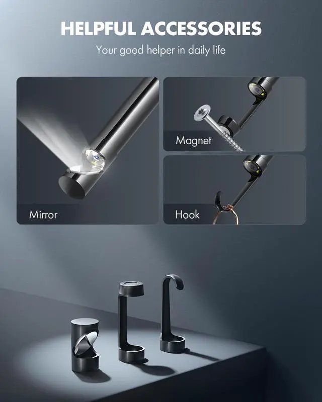 USB Endoscope Camera, Accessories( hook, side mirror, magnet), User Manual