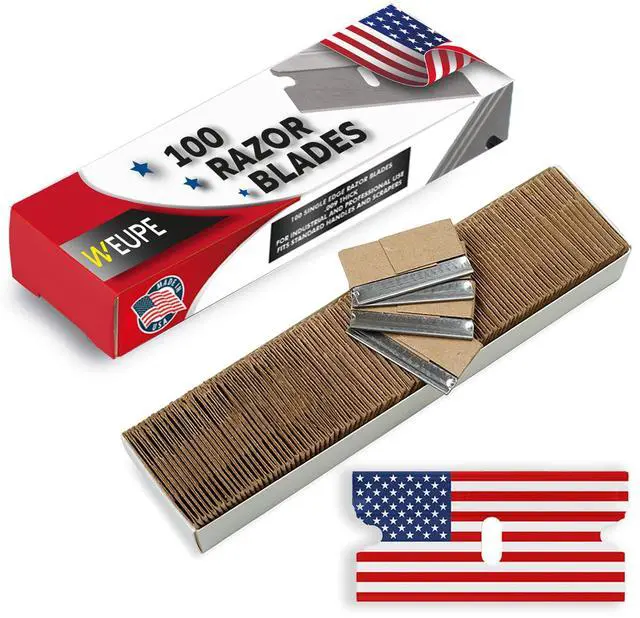 Single Edge Razor Blades, 100 Pack, Made in the USA, Industrial Razor Blades, Scraper Refills, Box Cutter, Paint Scraper, Safety Straight Edge Razor Blades