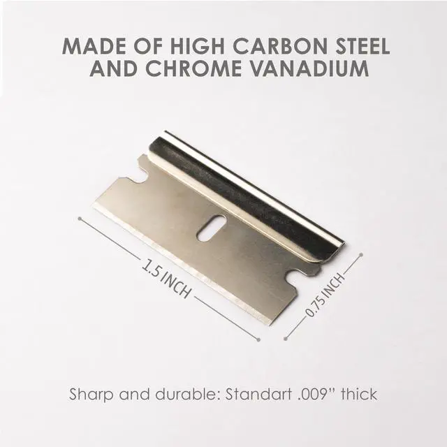 These steel single edge blades are great for general scraping and box cutting applications at a great value price. Super sharp edge safety razor blades are perfect for removing paint, stickers, mastic and decals from glass windows and doors
