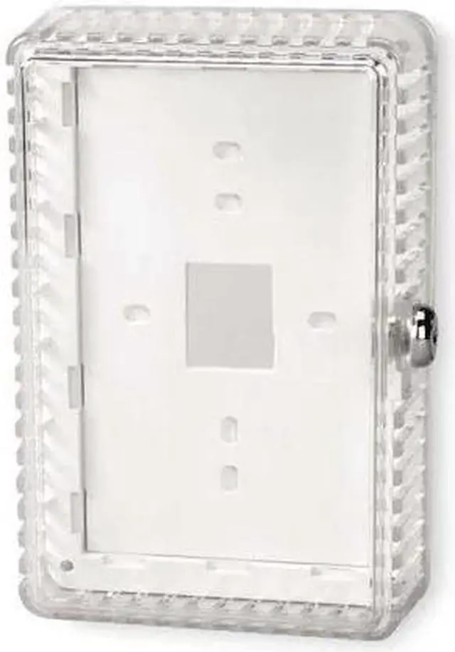 California Proposition 65: This product contains a chemical known to the State of California to cause birth defects or other reproductive harm. Universal Thermostat Guard, Base Type Ring Base, Solid Base, Cover Type Snap-On, Guard Construction Single Wall, Inside Depth 2 1/8 in, Inside Height 7 1/2 in, Inside Width 4 11/16 in, Material Plastic, Mounting Direction Horizontal or Vertical, Outside Depth 2 1/2 in, Outside Height 8 1/2 in, Outside Width 5 11/16 in, Thermostat Guard Cover Color Clear, Finish Cover Clear, Base and Ring Off-White, Includes Mounting Hardware, Includes Baseplate Yes, Number of Keys 2. This item has been restricted from sale in the following state (s): []