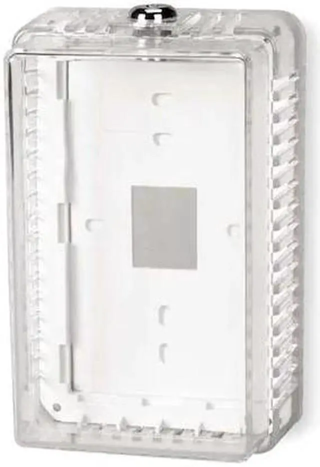 California Proposition 65: This product contains a chemical known to the State of California to cause birth defects or other reproductive harm. Universal Thermostat Guard, Base Type Ring Base, Solid Base, Cover Type Snap-On, Guard Construction Single Wall, Inside Depth 3 in, Inside Height 6 13/16 in, Inside Width 4 in, Material Plastic, Mounting Direction Horizontal or Vertical, Outside Depth 3 3/8 in, Outside Height 8 in, Outside Width 5 in, Thermostat Guard Cover Color Clear, Finish Cover Clear, Base and Ring Off-White, Includes Mounting Hardware, Includes Baseplate Yes, Number of Keys 2, Replacement Keys Grainger Part Number 26DJ03. This item has been restricted from sale in the following state (s): []
