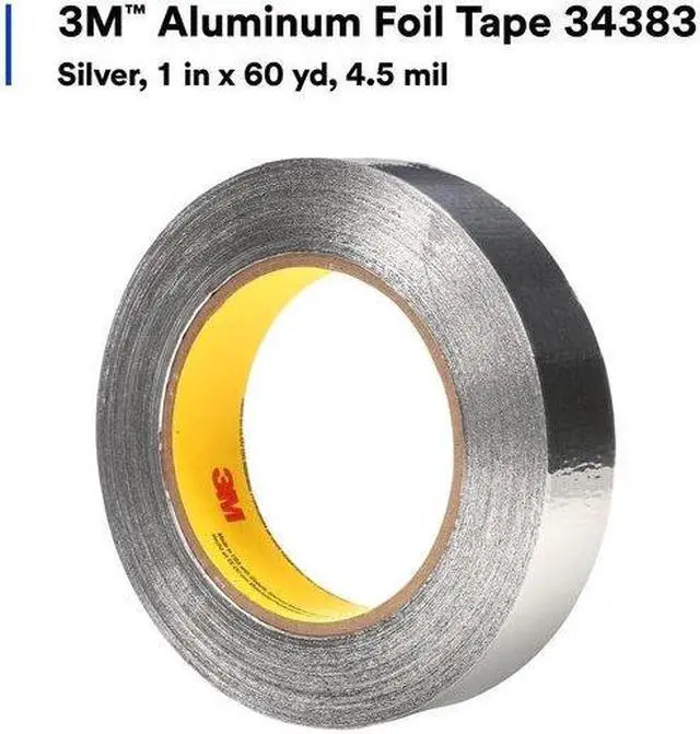 Foil Tape, Tape Brand 3M (TM), Brand and Series 3M 34383, Common Industry Assembly & Manufacturing, General Maintenance & Repair, Warehouse, Environment Indoor Only, Imperial Tape Length 60 yd, Imperial Tape Width 1 in, Imperial Tape WxL 1 in x 60 yd, Maximum Tape Performance Temperature 300 Degrees F, Minimum Tape Performance Temperature -40 Degrees F, Temperature Range -40 Degrees to 300 Degrees F, Product Form Continuous Roll, Series 34383, Tape Adhesive Material Acrylic. This item has been restricted from sale in the following state (s): []