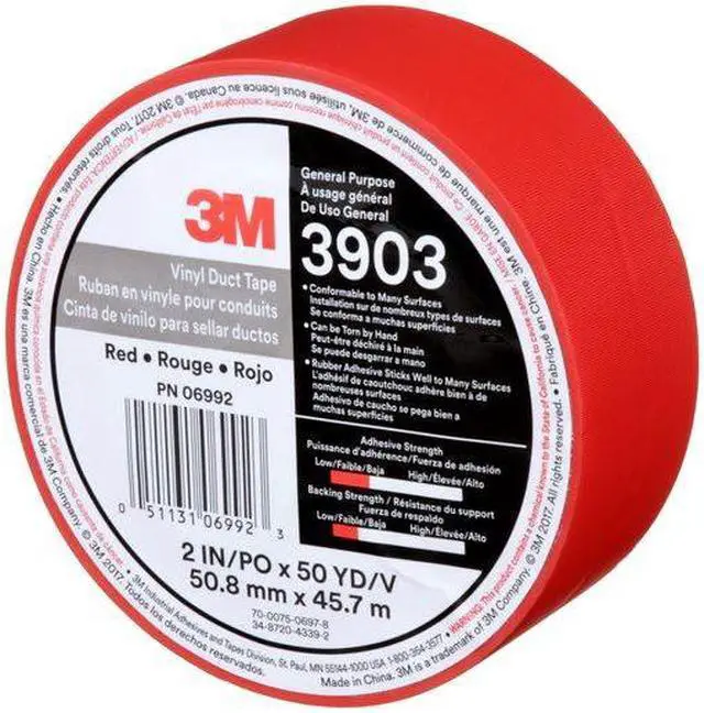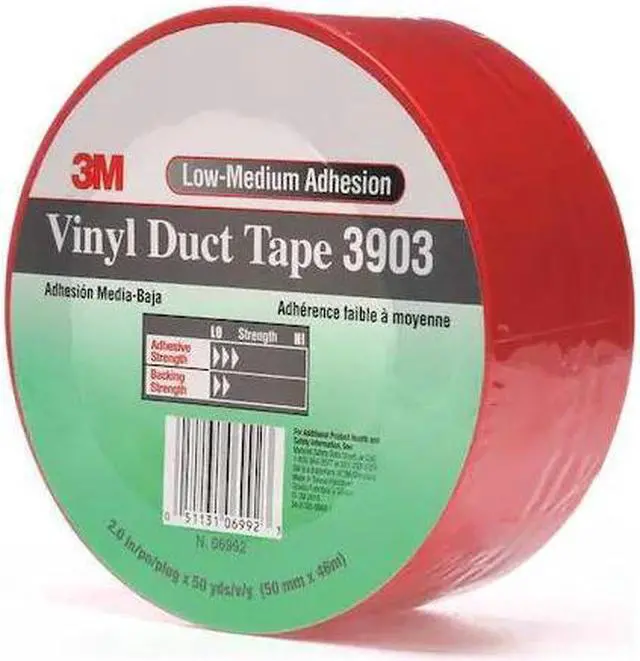 Tape, Number of Adhesive Sides 1, Duct Tape Type Duct Tape, Duct Tape Width 2 in, Duct Tape Length 50 yd, Duct Tape Thickness 6.3 mil, Duct Tape Grade Light-Duty, Tape Color Family Red, Red, Duct Tape Primary Material Vinyl, Material Vinyl Coated Cloth, Tape Shape Continuous Roll, Tape Adhesive Rubber, Performance Temp. 40 Degrees to 250 Degrees F, Adhesion Strength 16 oz/in, Tensile Strength 14 lb-in, Standards ASTM D3330, D3759, D3652. This item has been restricted from sale in the following state (s): []