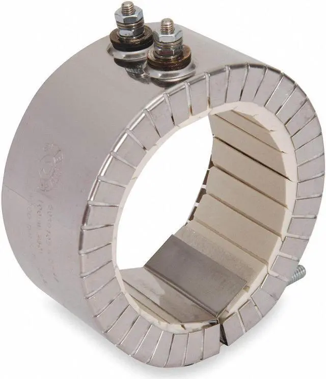 Band Heater, Heater Voltage 240V, Inside Dia. 2 3/8 in, Width 6 in, Material Mica Insulated, Max. Temp. 1, 400 Degrees F, Terminals Terminal Box, Termination 10/32 Screw Terminal, 1, 000 W Watts, Watt Density 24 W/sq in, 4.17 A Amps, Width Tolerance +/-1/16 in. This item has been restricted from sale in the following state (s): []