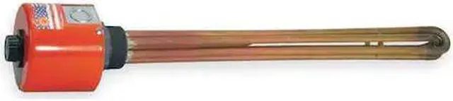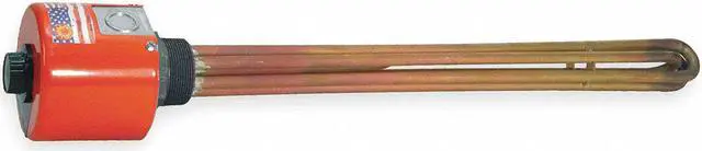 Screw Plug Immersion Heater, 1, 000 W Watts, Sheath Material Copper, Screw Plug Material Brass, Watt Density 91.51 W/sq in, Heater Voltage 120V AC, 1 Phase, Overall Length 12 7/16 in, Control Range 60 Degrees to 250 Degrees F, 1 in NPT, Enclosure Type NEMA 1, Min. Immersion Depth 6 3/8 in, Special Information Corrosion-Resistant Electrical Wiring Hardware, Recompacted Element Bends Restore Insulation Resistance After Forming, Silicone Resin Element Seal Standard. This item has been restricted from sale in the following state (s): []