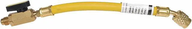 California Proposition 65: This product contains a chemical known to the State of California to cause birth defects or other reproductive harm. Hose, Connection Size 1/4 in Male x 1/4 in Female, 30 Degrees Angle, Number of Hoses 1, Length 6 in, Color Yellow, Hose Material Rubber, Working Pressure 800 psi, Burst Pressure 4, 000 psi, For Use With Charging and Recovery of Refrigerants, Features Manual Ball Valve Shut Off. This item has been restricted from sale in the following state (s): []