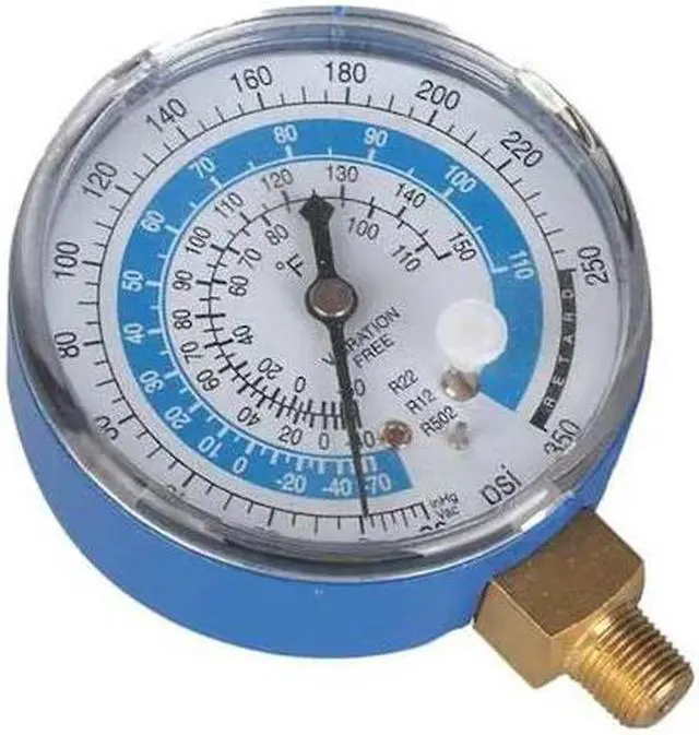 California Proposition 65: This product contains a chemical known to the State of California to cause birth defects or other reproductive harm. Low Side Gauge, Diameter 2 3/4 in, Working Pressure 30 in Hg to 350 psi, Connection Size 1/8 in, Color Blue, Gauge Type Low Side Gauge, For Use With R-12, R-22, R-502, Application Replacement Manifold Gauge for Manifold Gauge Sets. This item has been restricted from sale in the following state (s): []