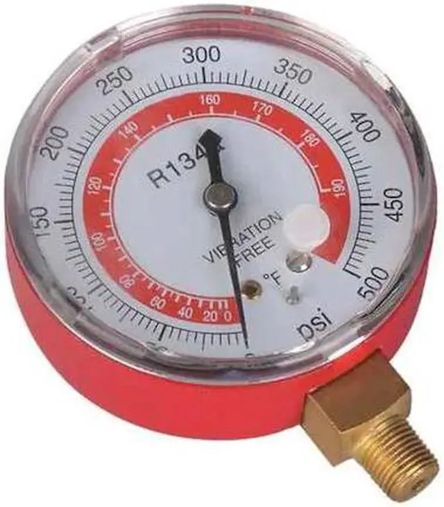California Proposition 65: This product contains a chemical known to the State of California to cause birth defects or other reproductive harm. High Side Gauge, Diameter 2 3/4 in, Working Pressure 0 to 500 psi, Connection Size 1/8 in, Color Red, Gauge Type High Side Gauge, For Use With R-134A, Application Replacement Manifold Gauge for Manifold Gauge Sets. This item has been restricted from sale in the following state (s): []