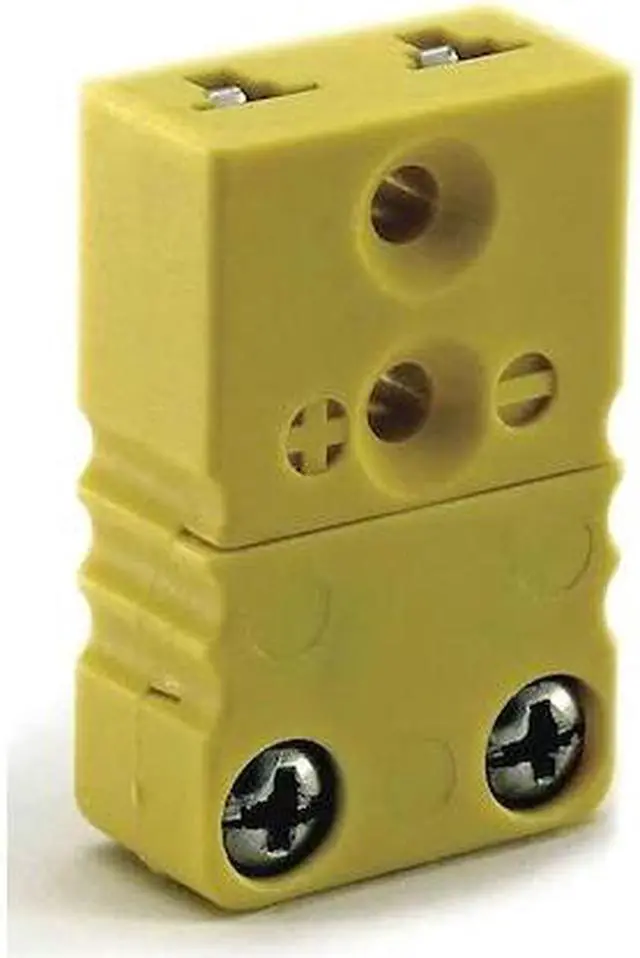 Thermocouple Jack, Body Material Glass-Filled Thermoplastic, Characteristics Flat Pins, No Logo, Color Yellow, Component Construction Glass Filled Thermoplastic Housing/Alumel and Chromel Contacts/Nylon Sheath, Contact Material Alumel, Chromel, For Sensor Type Type K, Maximum Temperature 356 Degrees F/180 Degrees C, Maximum Temperature Degrees C 180 Degrees C, Maximum Temperature Degrees F 356 Degrees F, Plug/Connector Type Mini Plug, Product Type Jack, Sheath Material Nylon. This item has been restricted from sale in the following state (s): []