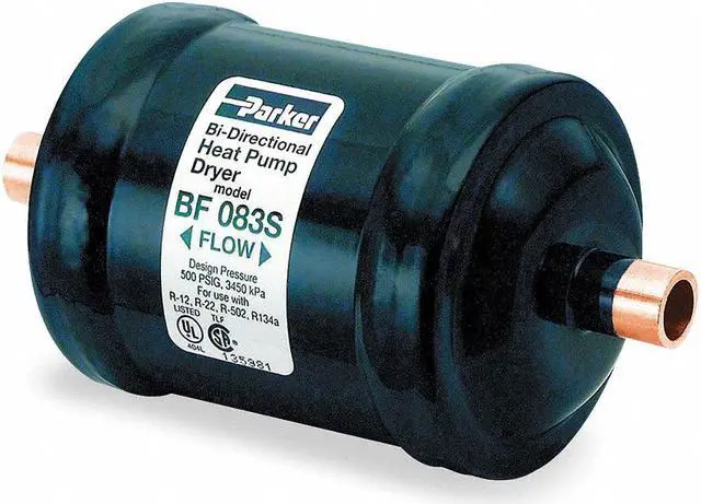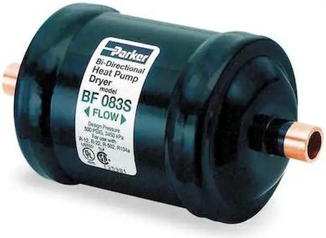 Liquid Line Filter Dryer, Connection Size (In. ) 3/8, Overall Length (In. ) 5 1/4 in, R-22 Capacity (Tons) 3 1/2 ton, Type Steel, Bi Flow, For Use With All CFC, HCFC and HFC Refrigerants, Connection Solder, Description Heat Pump Application, R-410A Capacity 3 1/2 ton, Cut Out Length (In. ) 4 1/4 in. This item has been restricted from sale in the following state (s): []