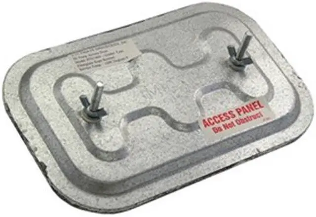 Duct Access Door, Door Height 4 in, Door Shape Rectangular, Door Thickness 1 1/8 in, Door Width 8 in, Fire Rating Not Rated, For Nominal Duct Diameter Not Applicable, Hinge Style None, Insulation Material Not Applicable, Latch Type Thumbscrews, Material Thickness 16 ga, Maximum Temperature Rating 2, 300 Degrees F, Mounting Stud Length 1 1/2 in, Number of Mounting Stud 2, Observation Port Height Not Applicable, Observation Port Material Steel, Observation Port Width Not Applicable. This item has been restricted from sale in the following state (s): []