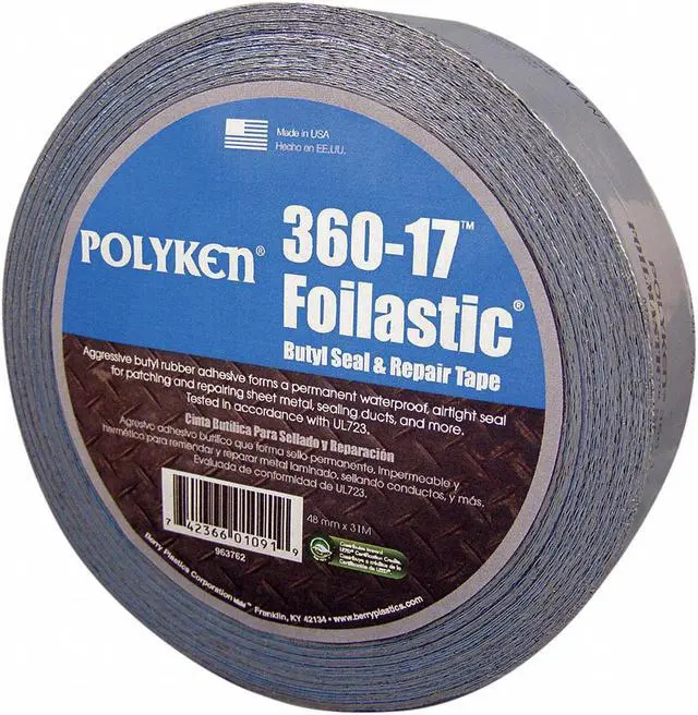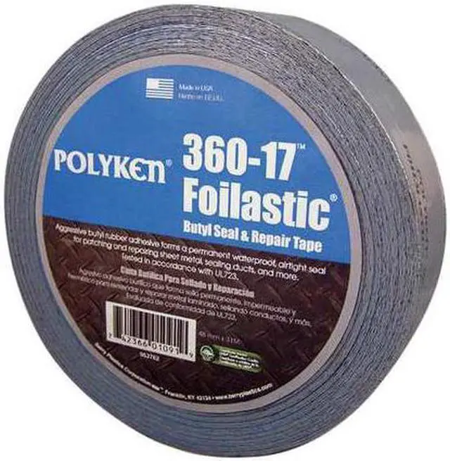 Foil Tape, Tape Brand Polyken, Brand and Series Polyken 360, Common Industry General Maintenance and Repair, Environment Indoor/Outdoor, Imperial Tape Length 33 7/8 yd, Imperial Tape Width 1 7/8 in, Imperial Tape WxL 1 7/8 in x 33 7/8 yd, Maximum Tape Performance Temperature 200 Degrees F, Minimum Tape Performance Temperature -40 Degrees F, Temperature Range -40 Degrees to 200 Degrees F, Product Form Continuous Roll, Series 360, Tape Adhesive Material Rubber, Tape Backing Material Aluminum Foil. This item has been restricted from sale in the following state (s): []