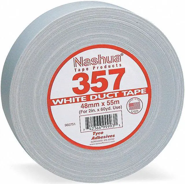Adhesion to Steel 95 oz/in, Tape Brand Nashua, Clean Removal Time Not Rated, Assembly and Manufacturing, Construction, General Maintenance and Repair, Metalworking, Warehouse, Environment Indoor/Outdoor, Imperial Tape Length 60 yd, Imperial Tape Width 2 3/4 in, Continuous Roll, Series 357, Tape Adhesive Material Rubber, Tape Backing Material Polyethylene Coated Cloth, Tape Color White, Tape Sub-Type General Purpose Duct Tape, Tape Thickness 13 mil, Duct and Repair Tape. This item has been restricted from sale in the following state (s): []