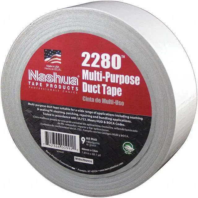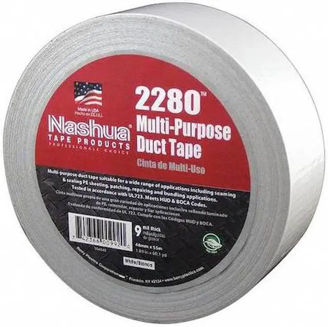 Tape Thickness 9 mil, Tape Brand Nashua, Common Industry Assembly & Manufacturing, Construction, General Maintenance & Repair, Metalworking, Warehouse, Indoor and Outdoor, Imperial Tape Length 60 yd, Imperial Tape Width 1 7/8 in, Maximum Tape Performance Temperature 200 Degrees F, Minimum Tape Performance Temperature 40 Degrees F, Continuous Roll, Series 2280, Tape Backing Material Polyethylene Coated Cloth, Tape Adhesive Material Rubber, Tape Sub-Type General Purpose Duct Tape. This item has been restricted from sale in the following state (s): []