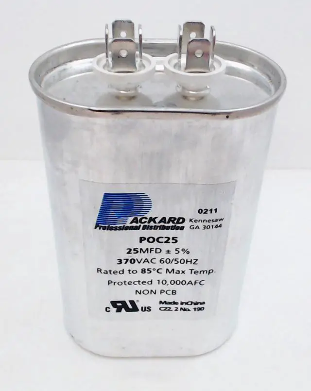 Brand new, Packard Run Capacitor, Oval, 25 Mfd., 370 Volt, TOC25, 25-370.