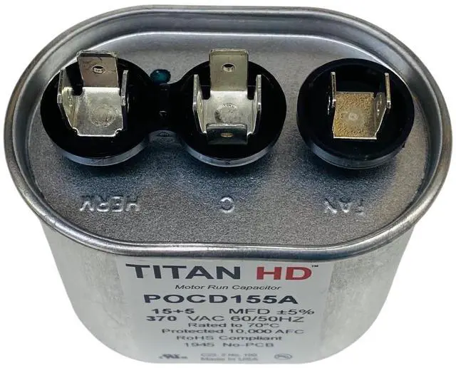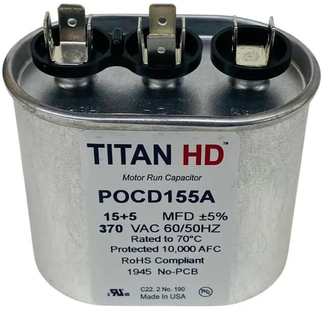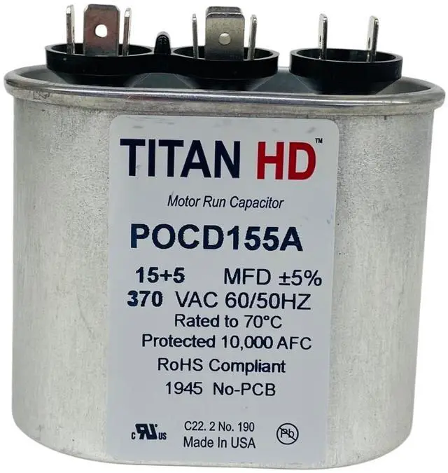 Highquality construction. Long service life. The ideal replacement dual run capacitor for systems requiring a 15+5 MFD, 370 Volt oval capacitor.