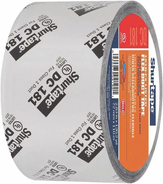 Tape Thickness 2.7 mil, Tape Brand Shurtape, Common Industry Construction, Indoor Only, Imperial Tape Length 120 yd, Imperial Tape Width 2 13/16 in, Maximum Tape Performance Temperature 210 Degrees F, Minimum Tape Performance Temperature 10 Degrees F, Continuous Roll, Series DC 181, Tape Backing Material Polypropylene Coated Cloth, Tape Adhesive Material Acrylic, Tape Sub-Type UL-Printed Duct Tape, Duct & Repair Tape, Adhesion to Steel 38 oz/in, Metric Tape Length 109.7 m