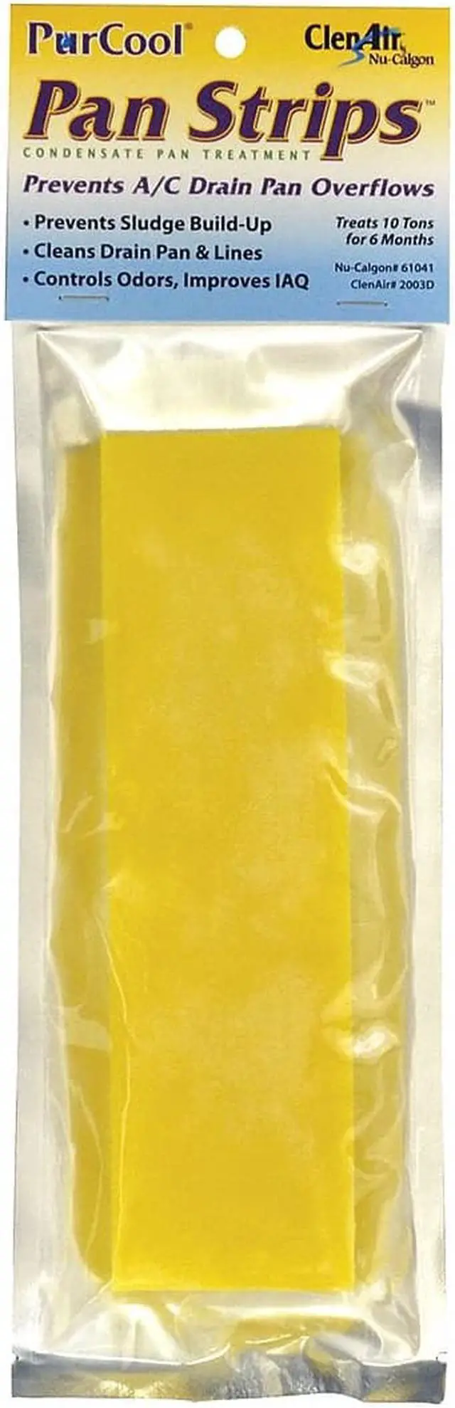 Condensate Pan Treatment, Solid, Size 10 tons Tablets, Color Yellow, Application Prevents Slime Growth and Clogs In Drain Pans, Eliminates Foul and Musty Odors, Non-Corrosive No, Non-Toxic No, For Use With System Size 5 to 15 t, Characteristics 6 Months Lasting, Leaves No Residue