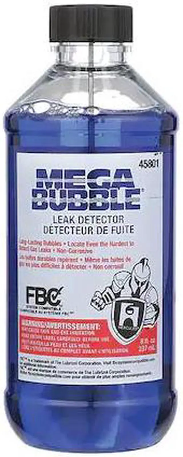 Gas Leak Detector, Liquid, Size 8 oz, Color Blue, Temp. Range (F) -50 Degrees to 200 Degrees, Characteristics High Viscosity Formula, Strength, Easily Detection of Gas Leaks on Pipes, Fittings, Tanks, Coils, Cylinders, Pressure Vessels, Valves, Longer Lasting Bubbles Remain On Surface, Non-Toxic, Non-Corrosive, For Use With Lines Carrying Air, Oxygen, Nitrogen, Natural or Propane Gas, Carbon Dioxide, Refrigerants, Includes Dauber. This item has been restricted from sale in the following state (s): []