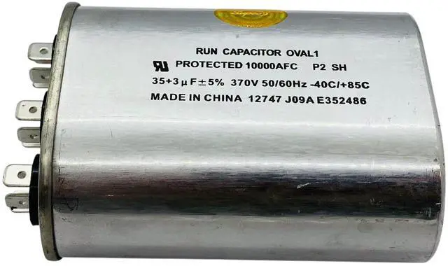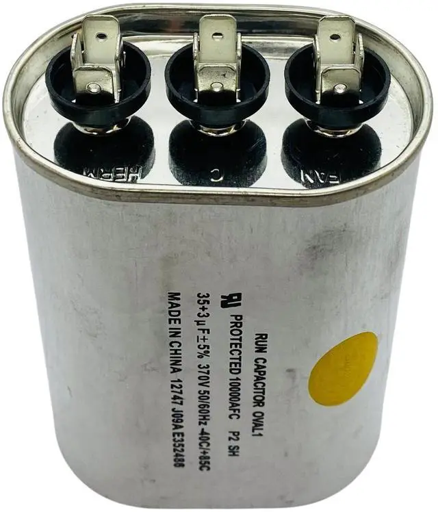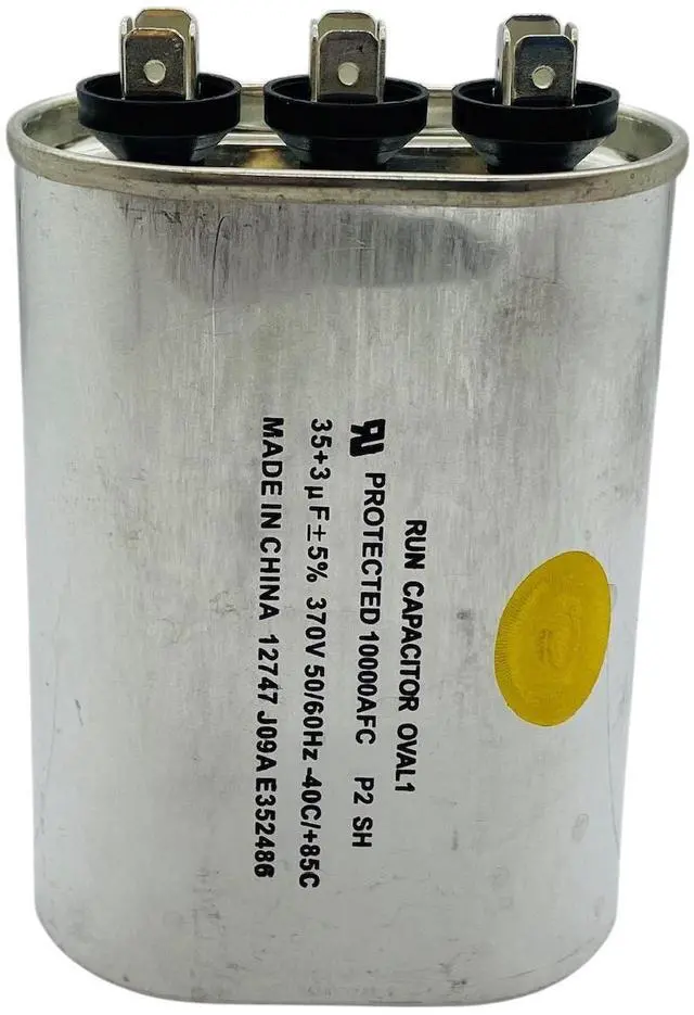 Common replacements include dual capacitors rated 35+3 MFD at 370VAC. Please verify your original part number before purchase.