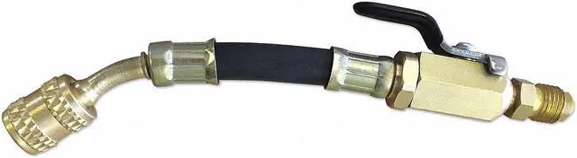 Mini Split Adapter, Connection Size 1/4 in Female, 0 Degrees Angle, Number of Hoses 1, Length 6 5/16 in, Color Black, Hose Material Rubber, Fitting Material Brass, Working Pressure 500 psi, Burst Pressure 1, 000 psi, For Use With HVAC/R, Mini Splits, Features Mini-Fit (R), Flexible, High Quality Brass Design with