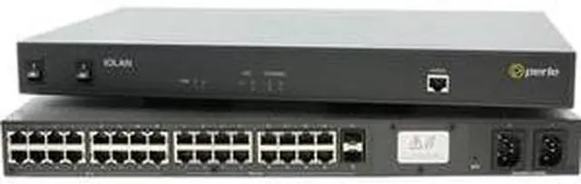 IOLAN SCR1618 RDAC Console Server: 16 x RS232 RJ45 Console Management Ports, 16 x Ethernet Managements Ports, 2 x SFP Slots supporting 1G/ 2.5G Fiber or 10/100/1000BaseT, IPv4/IPv6 routing (RIP, OSPF, BGP), ZTP, Cloudhosting, advanced data encryption and user authentication, 15kv ESD, Dual AC Power with USA power cord.