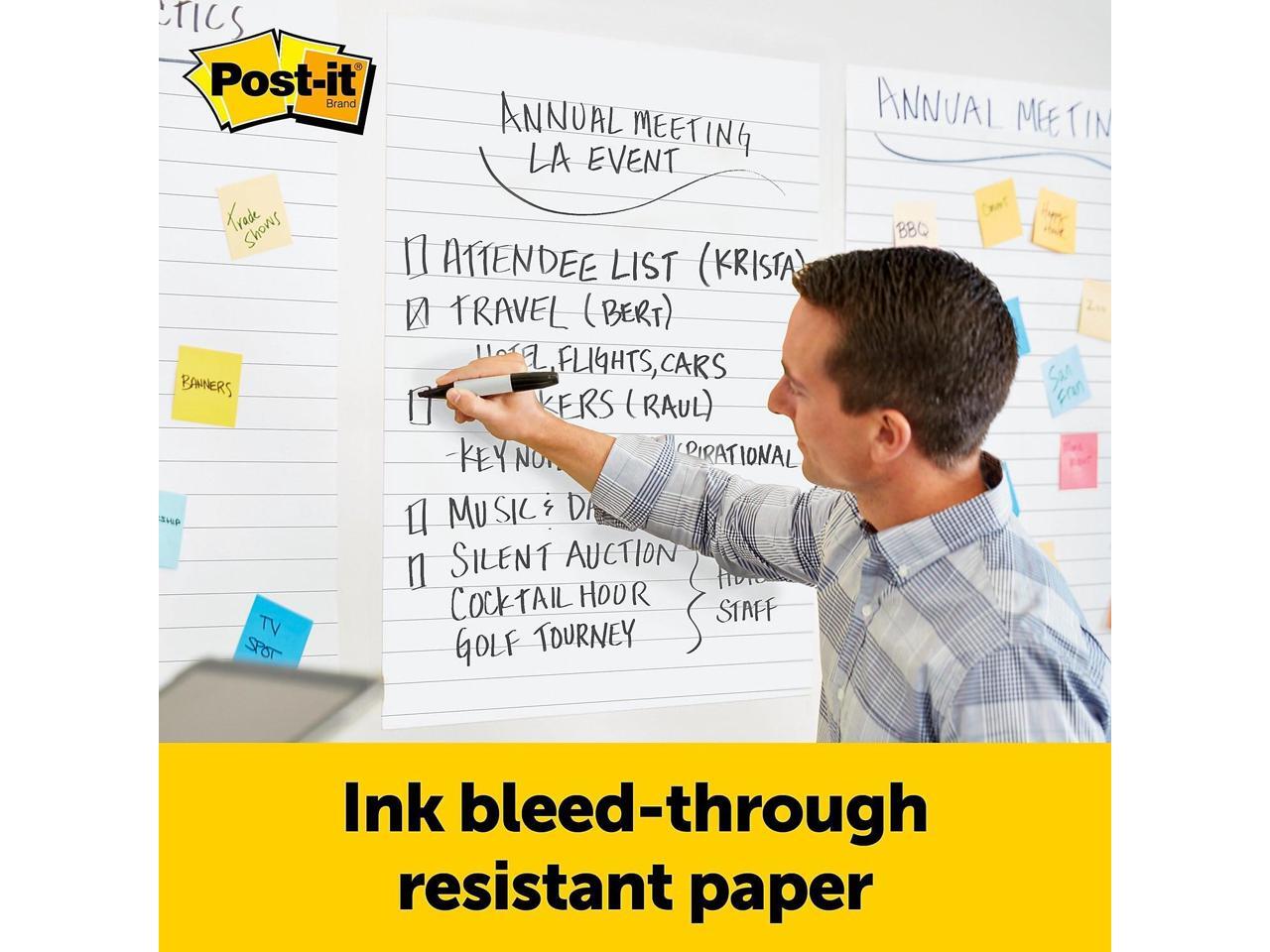 - INK BLEED-THROUGH RESISTANT PAPER - Large white lined premium self-stick flip chart paper that resists marker bleed-through to keep great ideas on the page, not on what's under the page. DESIGNED TO FIT MANY EASEL STANDS - Sturdy backcard has a handle to make the easel pad portable and slots to fit most easel stands. Perfect for student activities and training sessions. USA - Made in the USA with globally sourced materials.