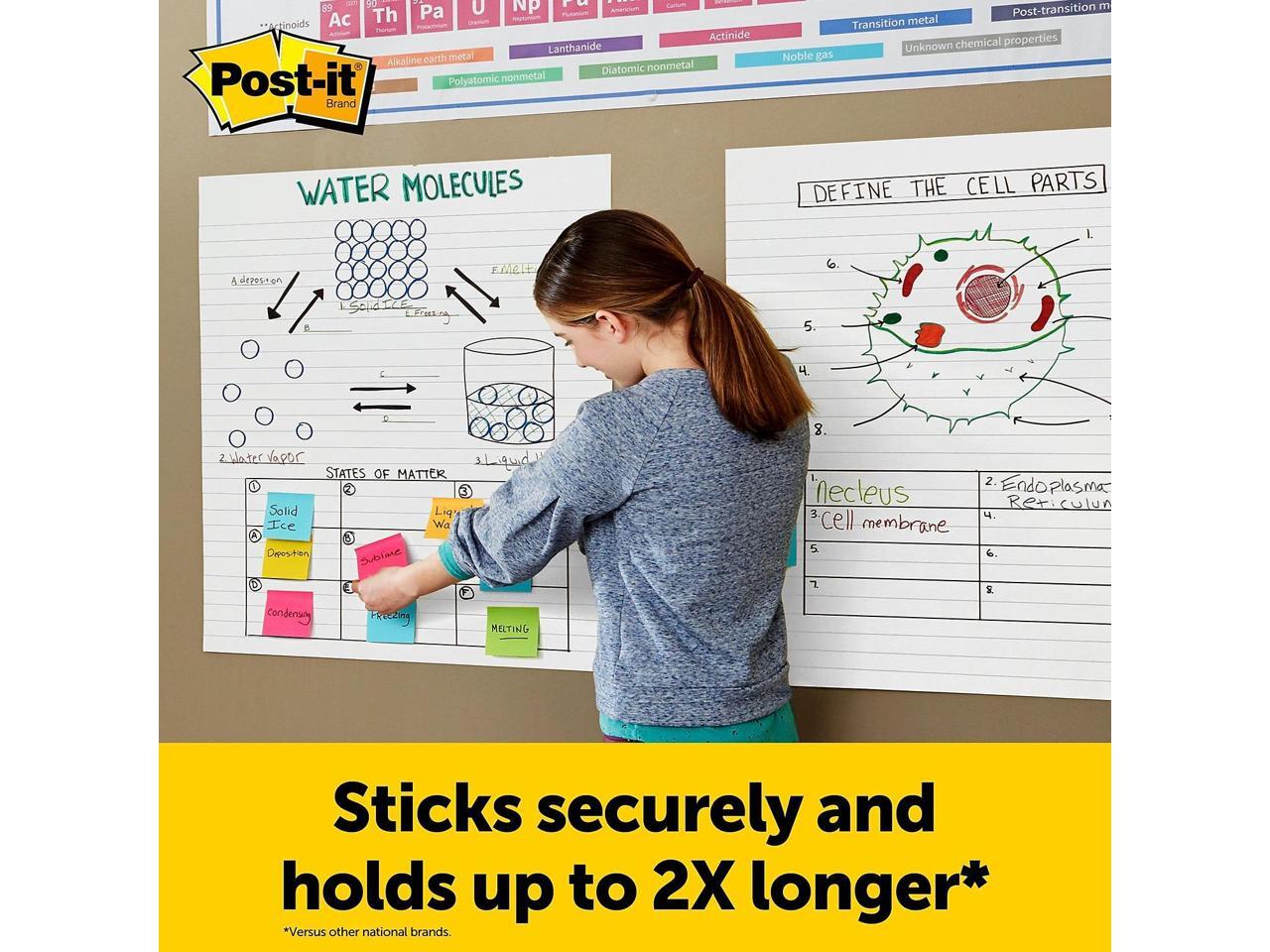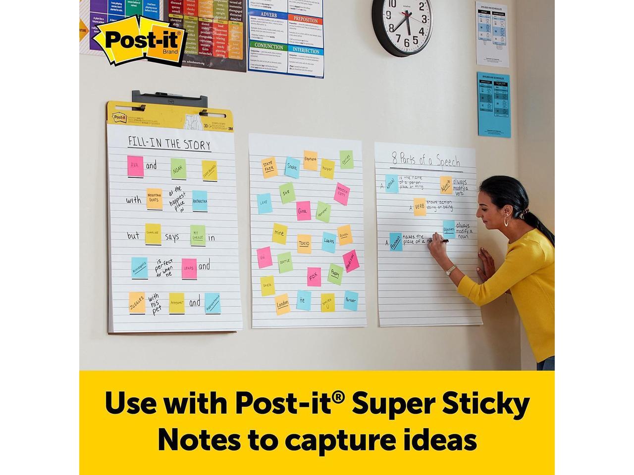 - STICKS SECURELY AND HOLDS UP TO 2X LONGER - Easel paper can be repositioned without surface damage. No tape or tacks needed unlike standard flip chart paper. Keep agenda and ideas where everyone can see. LARGE WHITE LINED PAPER - 25 in. x 30 in., 30 Sheets/Pad, 6 Pad/Pack. EXPLORE SIZES - Post-it Super Sticky Easel Pads also available in more sizes - Mini Easel Pad, Tabletop Pad and Wall Pad.