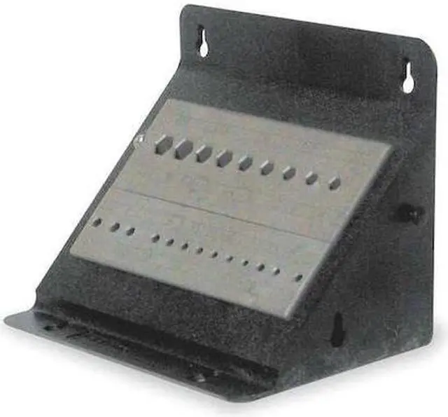 Universal Hex Key Stand, Overall Height 6 in, Overall Width 7 1/2 in, Overall Depth 6 1/2 in, Number of Slots 22, Organizer Type Mountable Stand, Fits Key Sizes 0.05 in to 3/8 in, 1.3 mm to 10mm, T6 to T55, For Tip Style Hex, Torx, Bench, Wall, Metric, SAE, Plastic, Black, Gray. This item has been restricted from sale in the following state (s): []