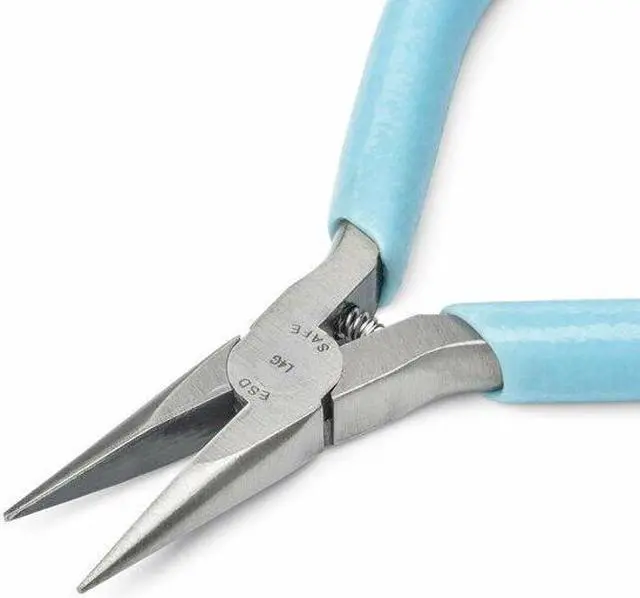Needle Nose Plier, Plier Type Needle Nose Pliers, Nose Shape Needle, Jaw Bend 0 Degrees, ESD-Safe Yes, Overall Length 4 in, Maximum Jaw Opening 3/4 in, Jaw Length 7/8 in, Tip Width 1/32 in, Insulated No, Non-Sparking No, Precision Yes, Voltage Rating Not Rated, Application Gripping, Cutting Capacities Not Specified, Features Copper Alloy Joint Rivet, Ergonomic Handle, Grip Material Plastisol, Grip Style Standard Cushion, Handle Color Blue, Handle Style Ergonomic. This item has been restricted from sale in the following state (s): []