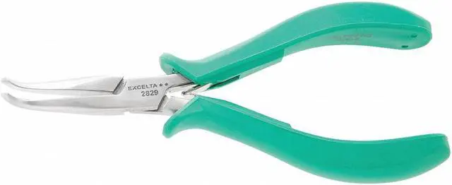 The Excelta 2829 Bent Long Nose Plier is a high-quality tool that can help you to complete your next project. It has a 5 3/4 in. length and smooth jaws. The long nose pliers have dual leaf springs, which allow for easy opening and closing of the jaws. The handle is molded grip, giving you a secure hold on the tool while you work. The bent tip allows you to get into tight spaces without having to worry about hitting anything with the tips of your pliers. Its stainless steel construction means it will last through many projects, even those involving tough materials like metal or wire.