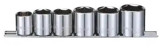 California Proposition 65: This product contains a chemical known to the State of California to cause cancer. California Proposition 65: This product contains a chemical known to the State of California to cause birth defects or other reproductive harm.Socket Set, Drive Size 3/8 In., SAE, Socket Size Range 11/16 In. to 1 In., Number of Pieces 6, Std. Socket Point Styles Included 6, Deep Socket Point Styles Included None, Flex Socket Point Styles Included None, Finish Chrome, Standard Tool (Accessory Needed for Tethering), Ratchets Included None, Sockets Included 3/8: Drive 6 pt. std.: 11/16 In., 3/4 In., 13/16 In., 7/8 In., 15/16 In., 1 In., Standards ANSI, Impact Rated No. This item has been restricted from sale in the following state(s): []