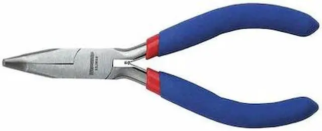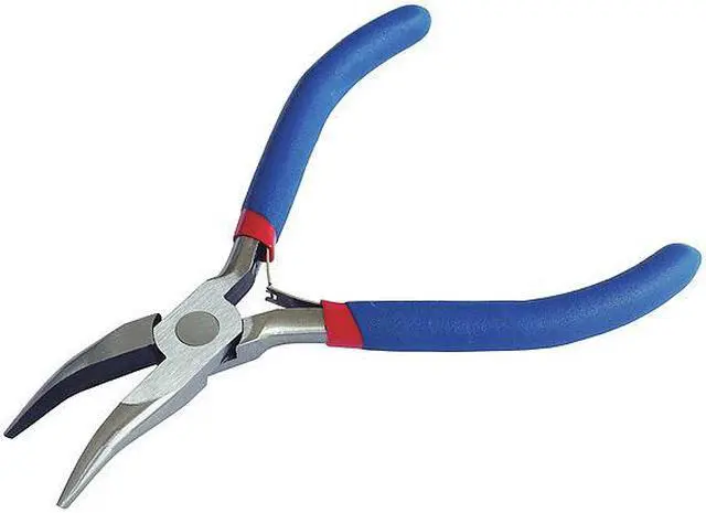 Bent Needle Nose Plier, Uninsulated, Nonsparking No, ESD Safe No, Side Cutter No, Wire Stripper No, Wire Crimper No, Jaw Bend 40 Degrees, Overall Length 4-1/2 In., Standard Tool (Accessory Needed for Tethering), Joint Type Solid, Gripping Surface Smooth, Spring Return Yes, Jaw Length 7/8 In., Tip Width 1/8 In., Max. Jaw Opening 1 In., Handle Type Dipped, Handle Color Blue, Material Steel, Cutting Capacity/Material Not Specified, Voltage Rating Not Rated, Standards ASME B 107.500
