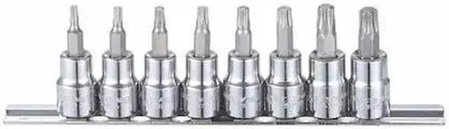 California Proposition 65: This product contains a chemical known to the State of California to cause cancer. California Proposition 65: This product contains a chemical known to the State of California to cause birth defects or other reproductive harm.Socket Bit Set, SAE, Drive Size 3/8 In., Tip Type Torx(R), Number of Pieces 8, Standard Tool (Accessory Needed for Tethering), Drive Type Female Square, Material Alloy Steel, Finish Chrome, Overall Length 1-55/64 In., Sockets Included T15, T20, T25, T27, T30, T40, T45, T47, Standards CAMCAR, TMF702. This item has been restricted from sale in the following state(s): []