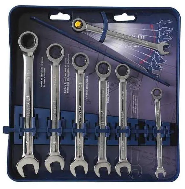 California Proposition 65: This product contains a chemical known to the State of California to cause birth defects or other reproductive harm. The Westward 6XZ89 Ratcheting Wrench Set is a set of 7 wrenches with 12-point, metric sizes. This set offers you everything you need to complete your projects in one package. The ratcheting wrench style is combined with the straight shape, allowing for easy access into tight spaces. The chrome finish gives these wrenches an attractive look and ensures that they are corrosion resistant. You will find this wrench set useful when working on automotive repairs, building maintenance and home improvement projects. When it comes to quality tools at affordable prices, look no further than the Westward 6XZ89 Ratcheting Wrench Set.. This item has been restricted from sale in the following state (s): []