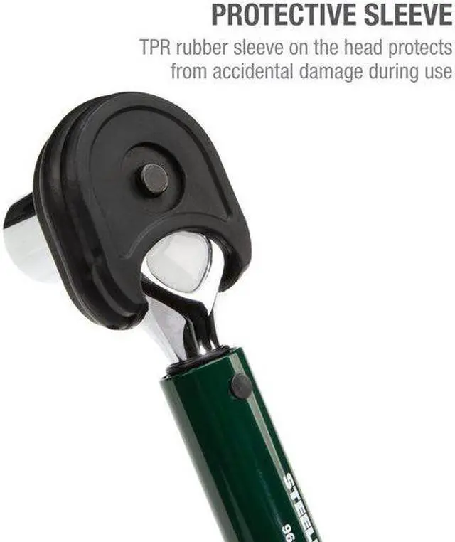 PRESET TORQUE - 1/2-Inch drive torque wrench is preset with a fixed torque of 80 ft-lb for efficient operationAUDIBLE AND TACTILE INDICATOR - Wrench emits a click that is easily felt and heard when reaching 80 ft-lb of torqueONE-DIRECTIONAL USE - Drive functions in one direction only, preventing damage from improper use as a breaker barCOLOR CODED - Shaft is powder-coated green for easy identification amidst similar looking toolsPROTECTIVE SLEEVE - TPR rubber sleeve on the ratchet head protects from accidental damage during useSTORAGE CASE - Included storage case protects the ratchet from damage that could cause a loss of calibration when not in useFACTORY CALIBRATED - All STEELMAN Torque wrenches come with a certificate of calibration and are ready to use right out of the box