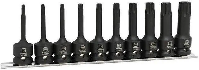 California Proposition 65: This product contains a chemical known to the State of California to cause birth defects or other reproductive harm. The Dynamic D018101 Tools 1/2" Drive 10 Piece Torx Hex Head Bit Impact Socket Set is the perfect addition to your toolbox. It comes with ten pieces of socket sizes T25, T27, T30, T40, T45, T50, T55, T60, T70 and T80. This one-piece construction makes the sockets stronger than most competitors' tools. The high visibility size markings help you select the right socket more easily. Corrosion resistant black oxide finish helps prevent rusting or corrosion for longer life. With the Dynamic D018101 Tools 1/2" Drive 10 Piece Torx Hex Head Bit Impact Socket Set in your toolbox you will be ready for any job that comes your way.