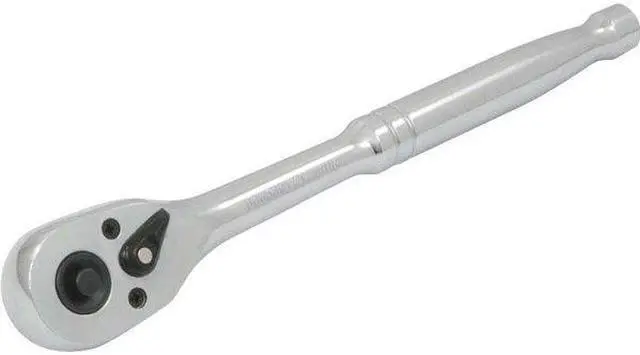 of teeth: 45. Chrome finish for maximum resistance against corrosion. Release button ensures sockets and attachments securely lock on and quickly-release off. Convenient thumb operated reverse-switch mechanism. Teardrop head design allows for great access in confined spaces. Meets ANSI standards.