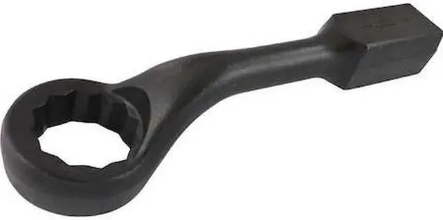 Drive Type: 12 Point. 45° Offset Head design. Large and robust striking block for maximum possible safety and surface contact. Corrosion resistant black oxide finish. Precision broached for a tight and secure fit. Forged from premium tool steel for maximum durability. Meets ANSI standards.