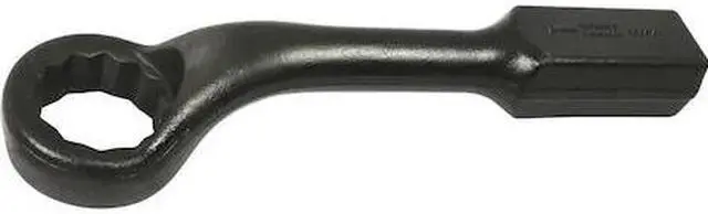 Drive Type: 12 Point. 45° Offset Head design. Large and robust striking block for maximum possible safety and surface contact. Corrosion resistant black oxide finish. Precision broached for a tight and secure fit. Forged from premium tool steel for maximum durability. Meets ANSI standards.