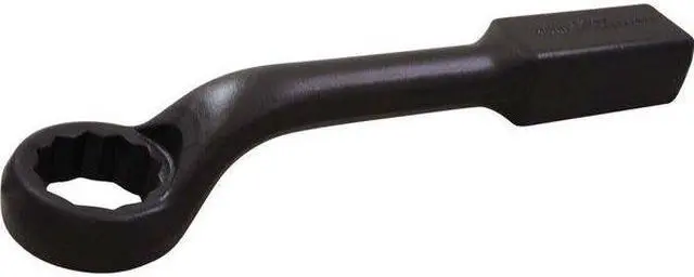 Drive Type: 12 Point. 45° Offset Head design. Large and robust striking block for maximum possible safety and surface contact. Corrosion resistant black oxide finish. Precision broached for a tight and secure fit. Forged from premium tool steel for maximum durability. Meets ANSI standards.