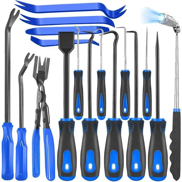 | Package Contains | 17Pcs Mechanic Hook and Pick Tool Set(Blue) | 17Pcs Mechanic Hook and Pick Tool Set(Red) | 11 Pcs Automotive Hook and Pick Tool Set | 3 Pcs Car Trim Rivet Removal Pry Tool | 3 Pcs Fastener Remover Set | 7 Pcs Car Trim Removal Tool Kit |
