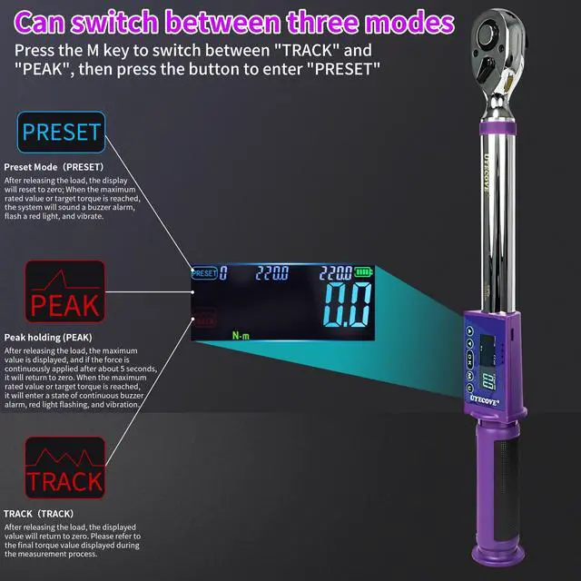 [Torque Range] Digital Torque Wrench 1/2 Drive, 11-200 N.m, Suitable for various automotive, bicycle, and mechanical applications