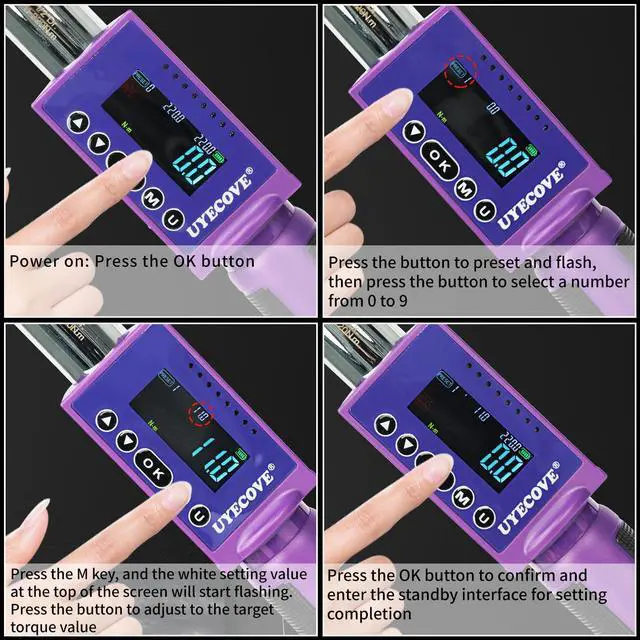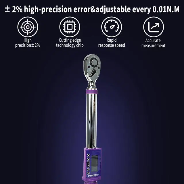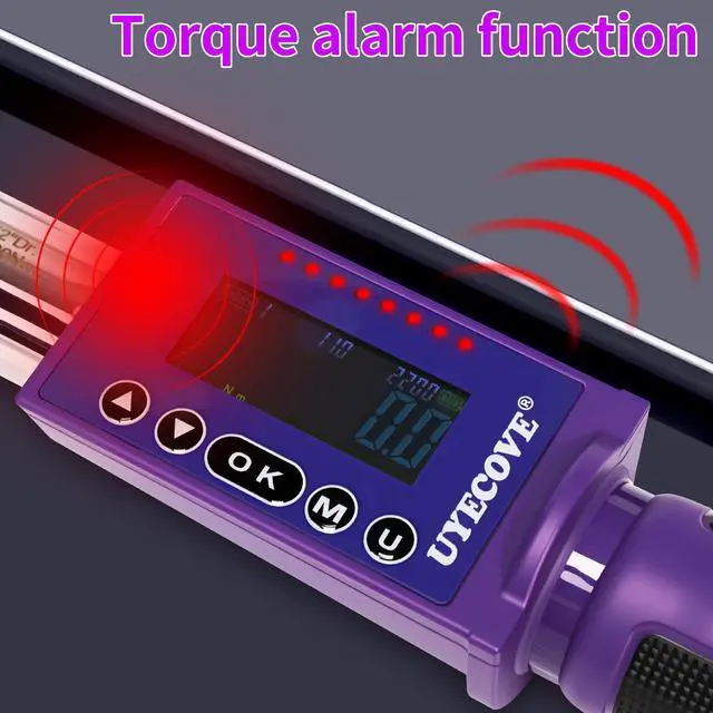 [Sound and Light Alarm] Adopting advanced digital display, intermittent buzzing sound will be emitted when reaching 80% of the target torque value. When the target torque value or above is reached, continuous buzzing sound will be heard and the LED will light up to ensure precise operation