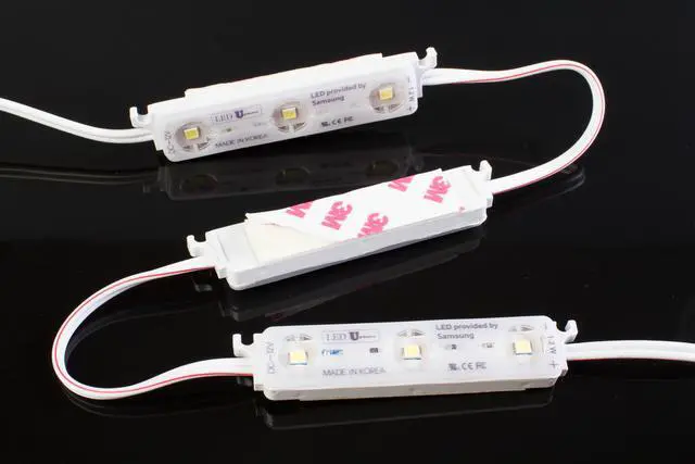 This bright waterproof LED module features Samsung LED chip and is Made in Korea. Each strip of 50pcs is approximately 25ft and each LED module is 1.2w It can be used in many applications like a storefront, under cabinet, the ambient light behind furniture and many more. Don't wait, get this set today and start your DIY project!