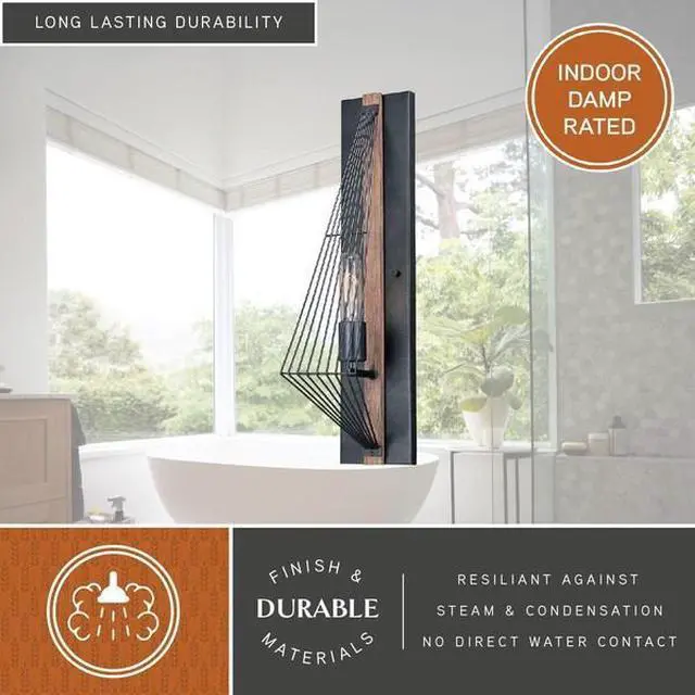 Strong geometric overtones clearly suggest a modern industrial flair in the Dearborn collection. Black Iron finished wire along with accents of burnished oak and vintage Edison bulbs are a stunning combination.. This item has been restricted from sale in the following state (s): []