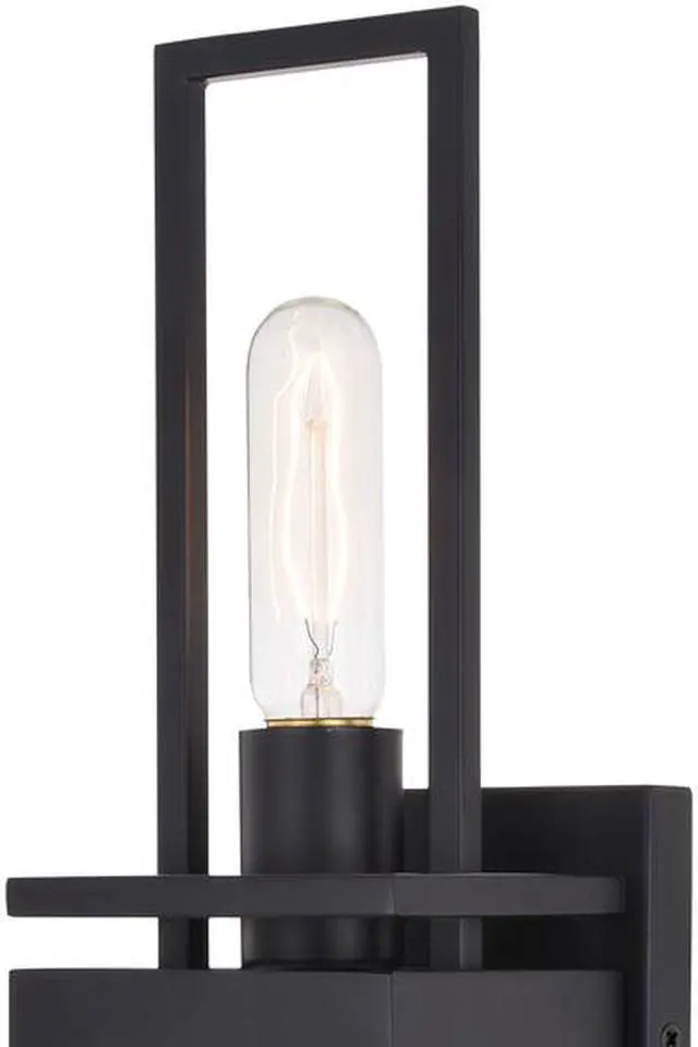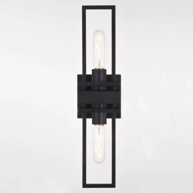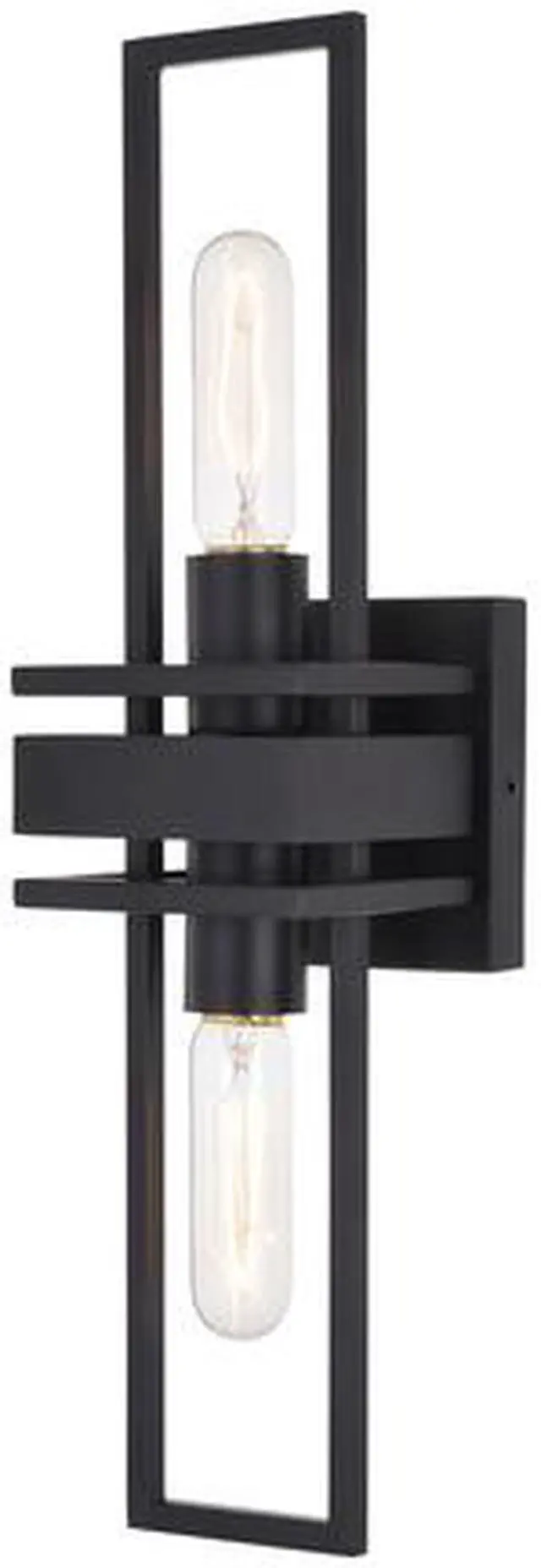 A bold open frame creates geometric statement in the Marquis collection. Elongated structures in a satin nickel or black finish offer two distinct options that will bring a contemporary feel to any space. Combine that with vintage Edison style filament bulbs to complete the look. This wall sconce is ideal for bathrooms, hallways, stairways, foyers, and more. Matte black finish offers a distinctive look and quality steel construction Open cage design provides bright illumination and a contemporary feel Uses 2 x 60 watt E26 medium base bulbs (not included); led compatible 4.75 -in.
