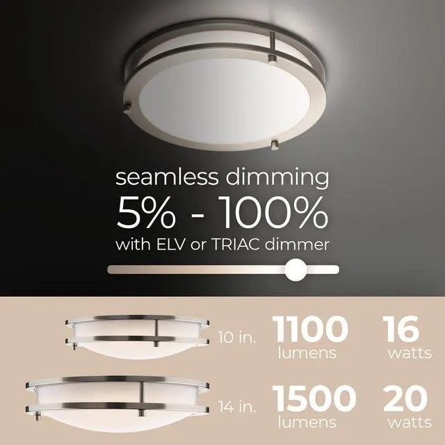 Energy Efficient: This powerful energy efficient LED flush mount is bright with even illumination. Available in 10in or 14in sizes